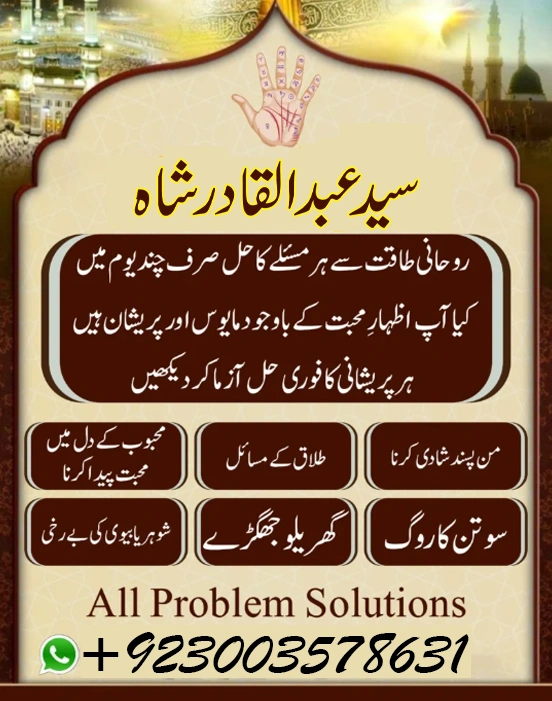 Syed Abdul Qadir Shah provides online Istikhara services for people who need guidance in important life matters. Many people contact him for help with love marriage problems, marriage decisions, manpasand shadi, and arranged marriage concerns.